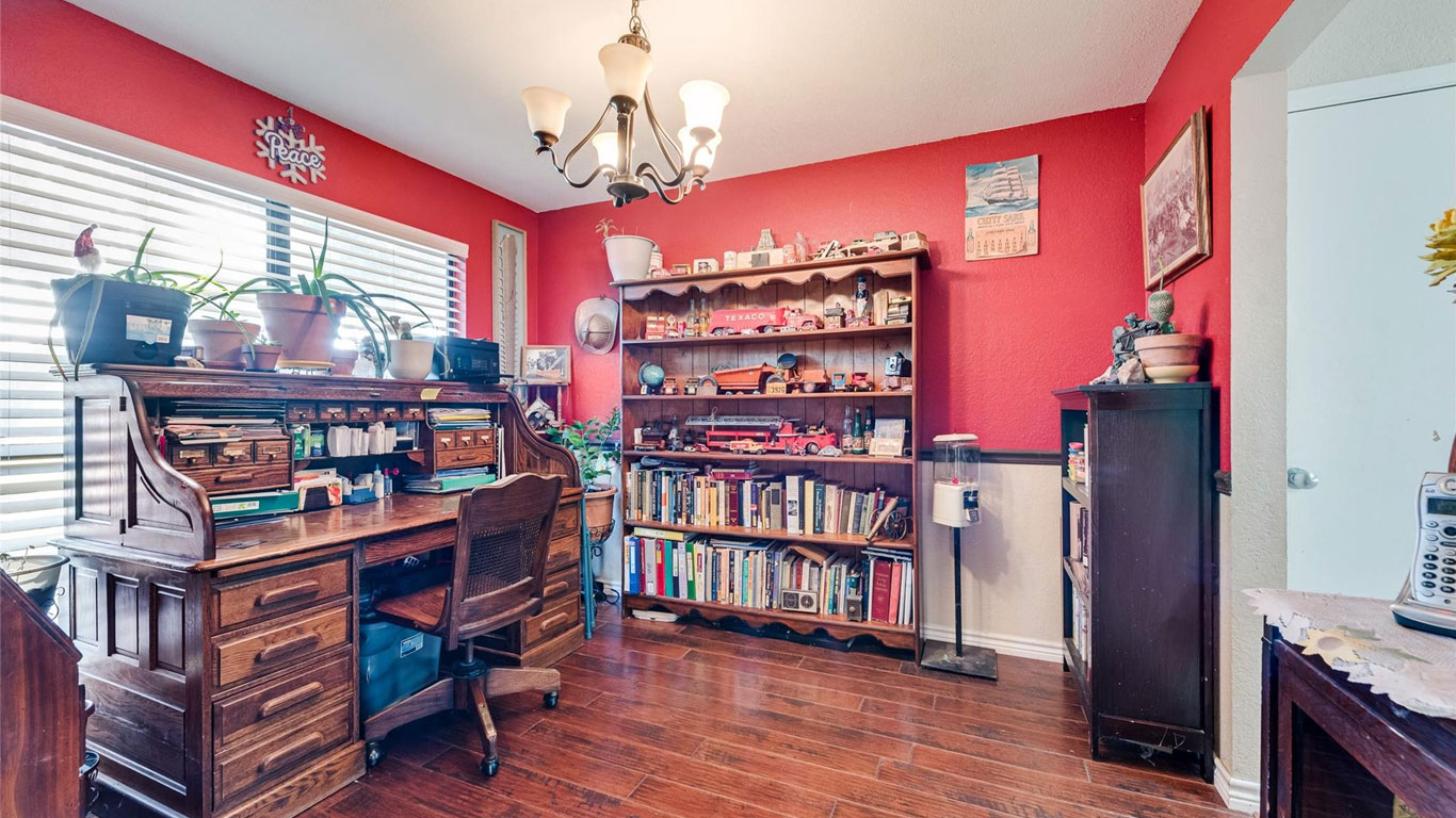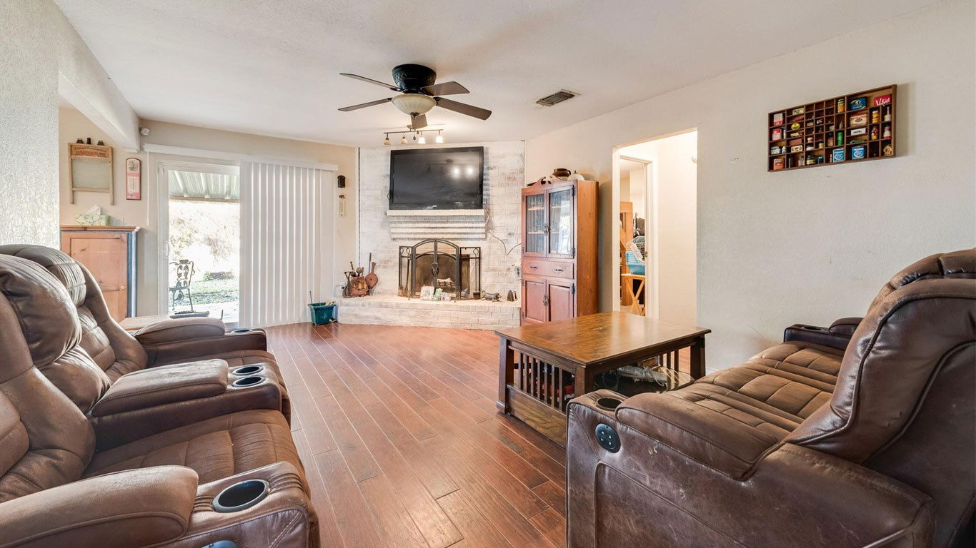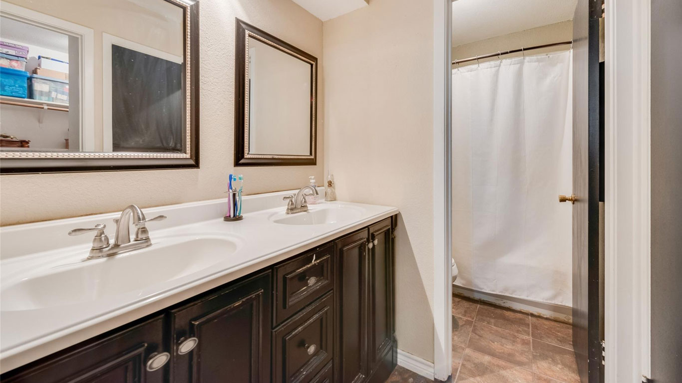 This Benbrook brick home on a quiet cul-de-sac features wood floors, a cozy fireplace, breakfast nook, spacious primary suite with dual sinks and walk-in closet, plus multiple storage buildings with electricity and a lifetime transferable warranty.