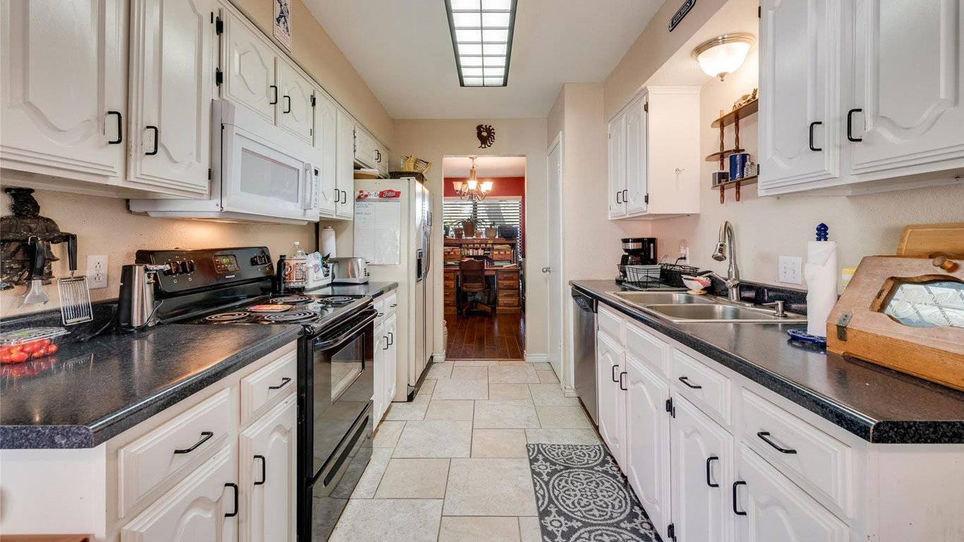 Nestled in a peaceful cul-de-sac in the heart of Benbrook, this inviting brick home offers both comfort and convenience. The living room features wood floors and a cozy brick fireplace, Through to the the well-appointed kitchen, you have a charming breakfast nook, ideal for casual meals or morning coffee. The large primary bedroom is a true retreat, offering space for a sitting area, dual sinks in the en-suite bathroom, and a generous walk-in closet. Outside, you’ll find multiple storage buildings, including one with electricity—perfect for a workshop, craft room, or extra storage. This home also comes with a lifetime transferable warranty. Definitely a must-see!