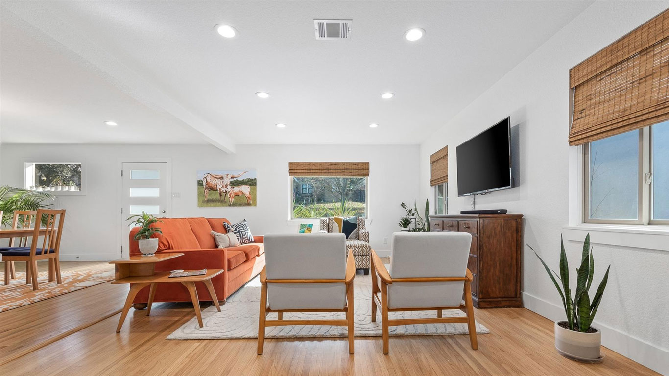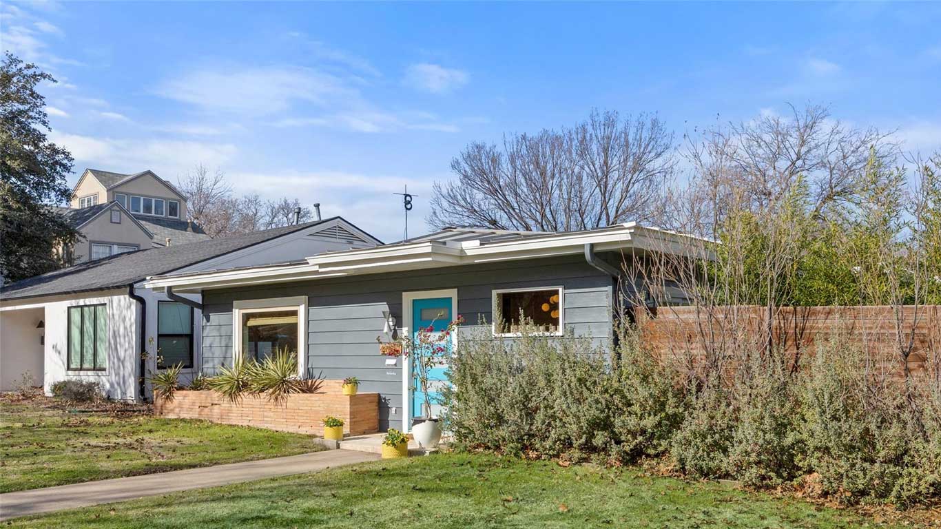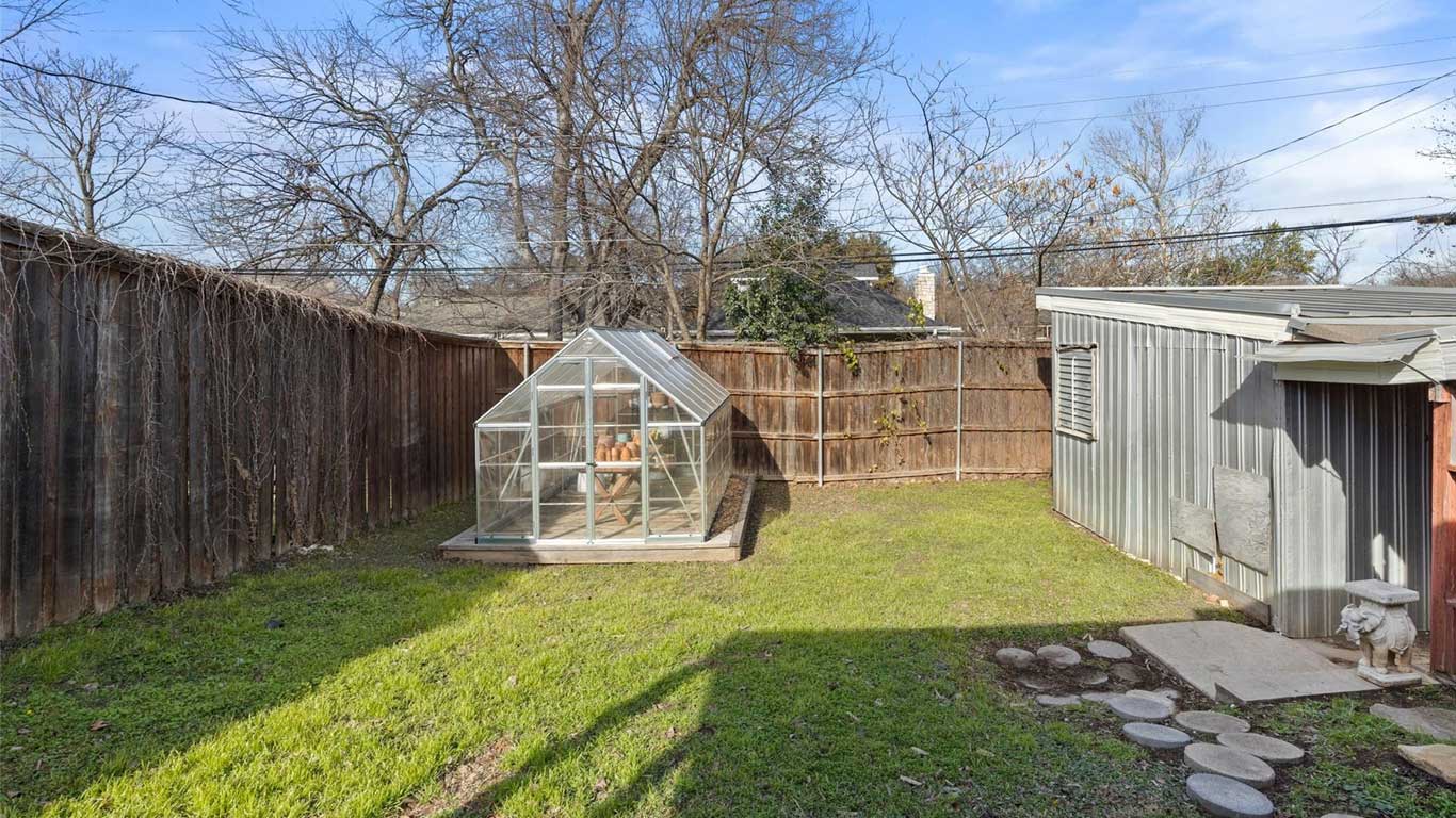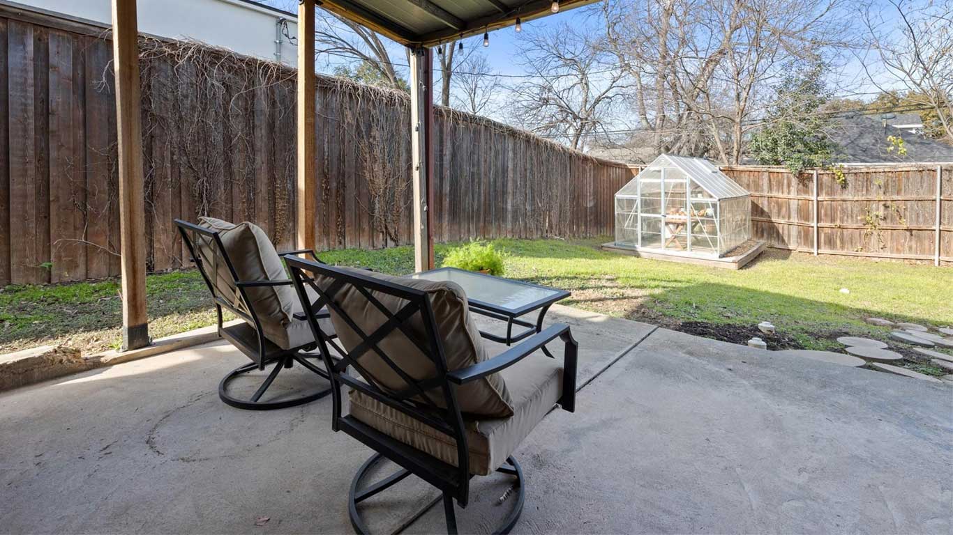 Beautifully restored mid-century Arlington Heights home with high-end 2020 updates, modern systems, white oak floors, metal kitchen cabinetry, marble bath, greenhouse, and a serene flagstone courtyard—steps from Dickies Arena and fully move-in ready.