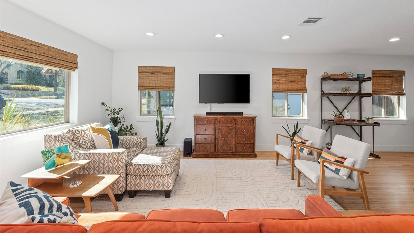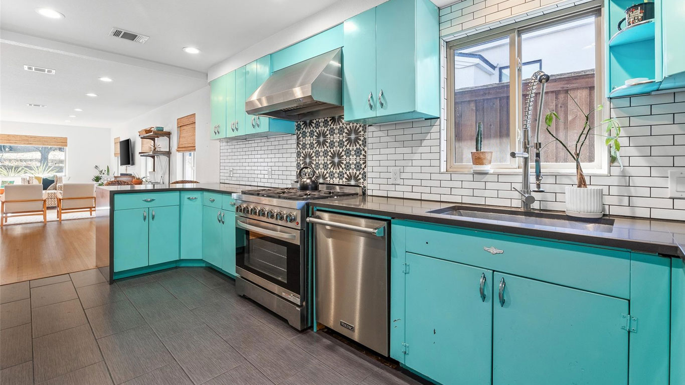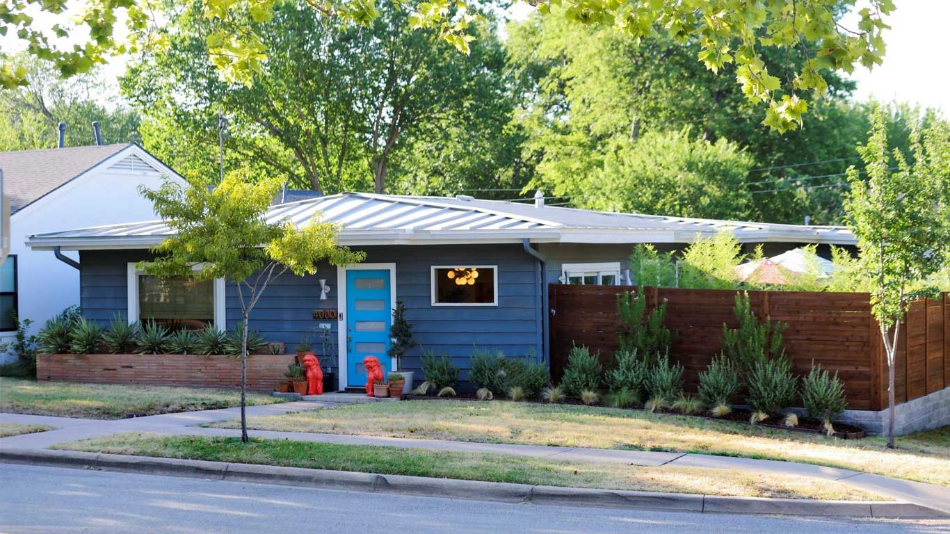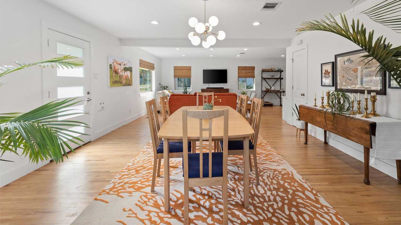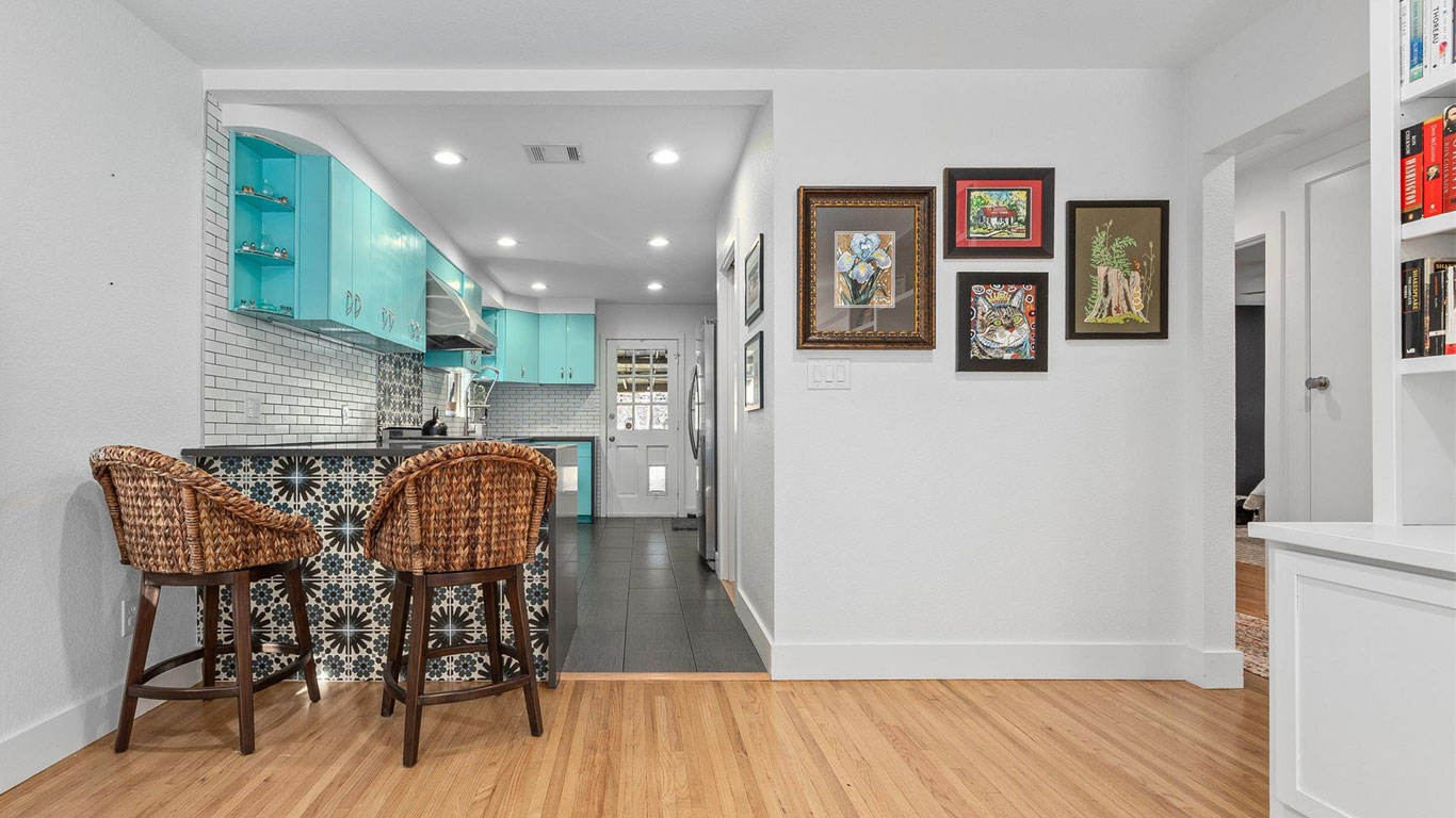 Beautifully restored mid-century Arlington Heights home with high-end 2020 updates, modern systems, white oak floors, metal kitchen cabinetry, marble bath, greenhouse, and a serene flagstone courtyard—steps from Dickies Arena and fully move-in ready.