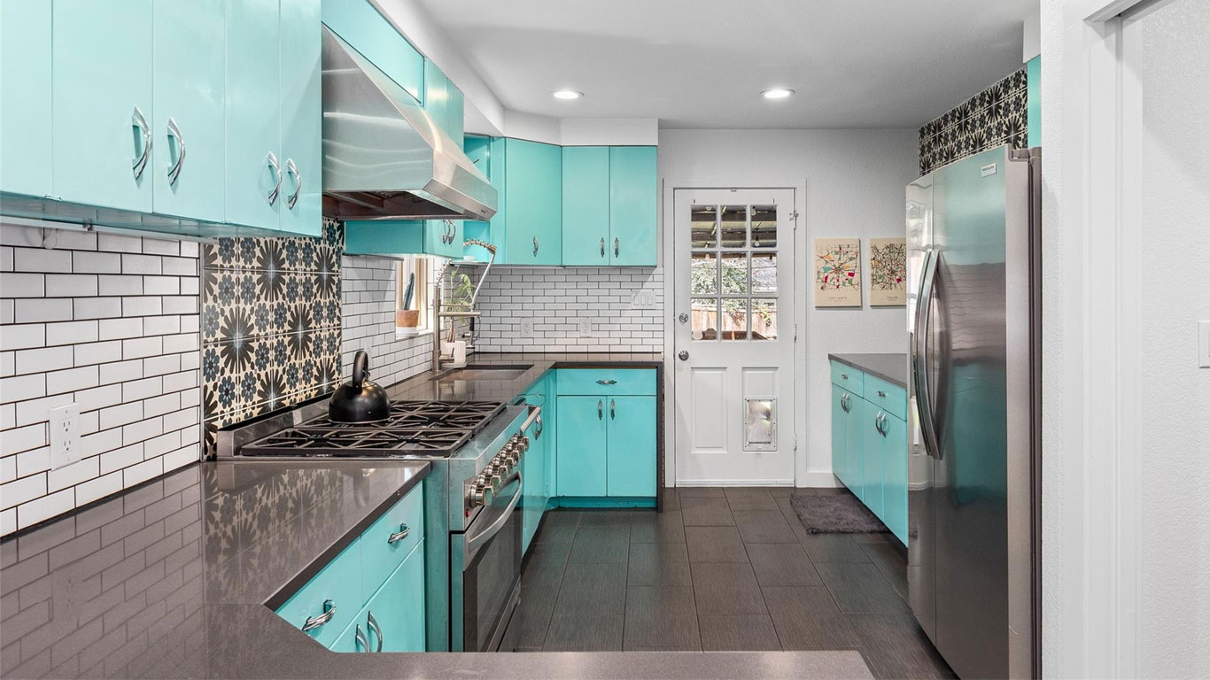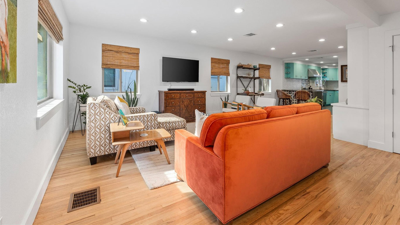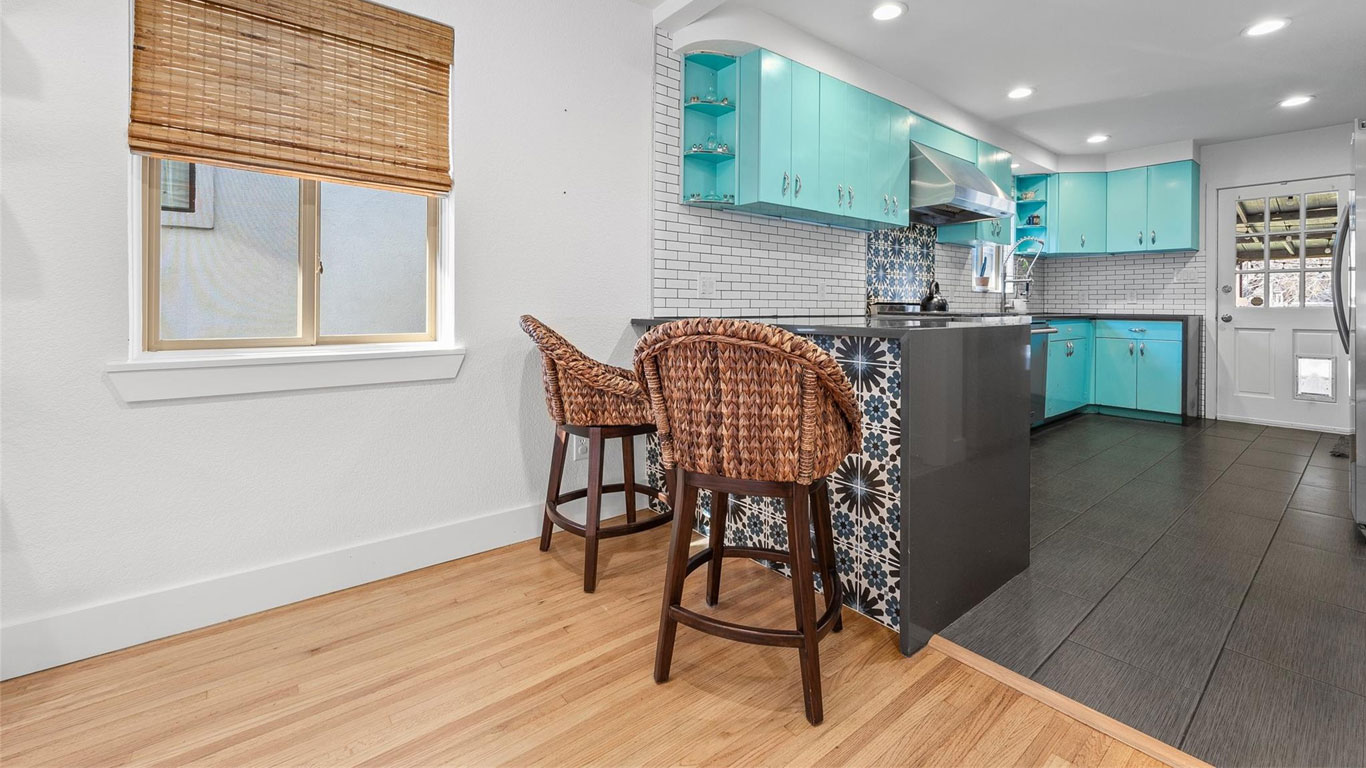 Beautifully restored Arlington Heights mid-century home featuring 2020 down-to-the-studs updates, including refinished white oak floors, Pella windows, authentic metal kitchen cabinets, black quartz countertops, a marble bath with brass fixtures, new HVAC, plumbing, electrical, and tankless water heater. Enjoy a serene flagstone courtyard with water feature, greenhouse, drought-tolerant landscaping, and prime walkability to Dickies Arena—truly move-in ready.