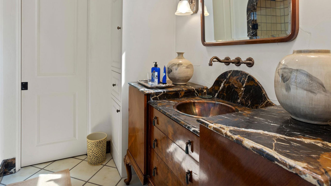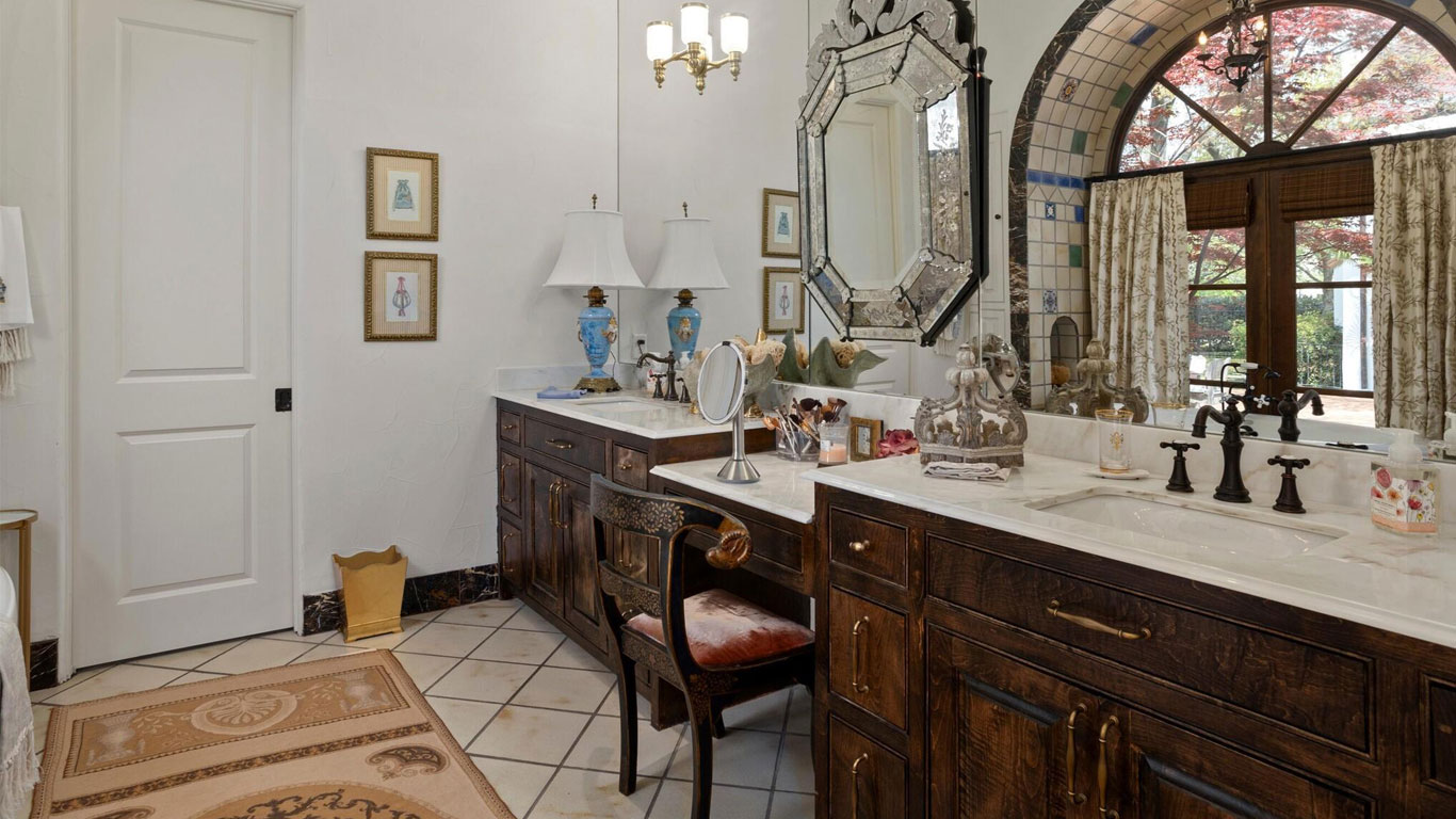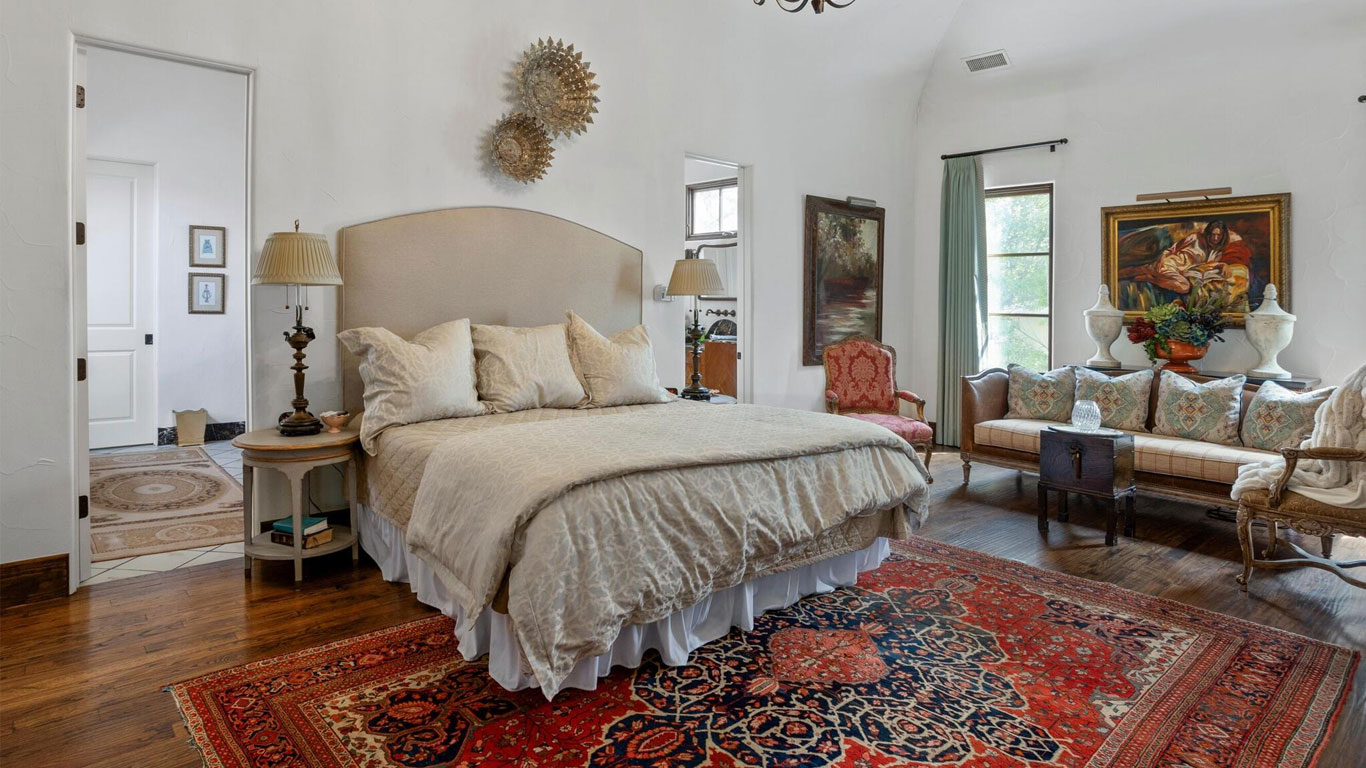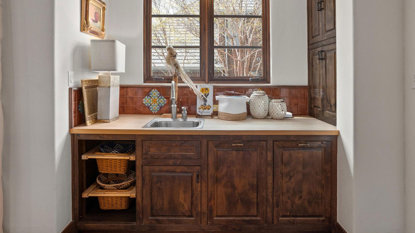 This stunning Spanish-style Westside home offers 4 bedrooms and 4.5 baths, featuring an open layout with tall, wood-detailed ceilings, high-end finishes, and beautiful tile and woodwork throughout. The main level includes a luxurious primary suite and guest suite, while arched doorways lead to a light-filled sunroom overlooking a serene garden patio with a large stucco fireplace.