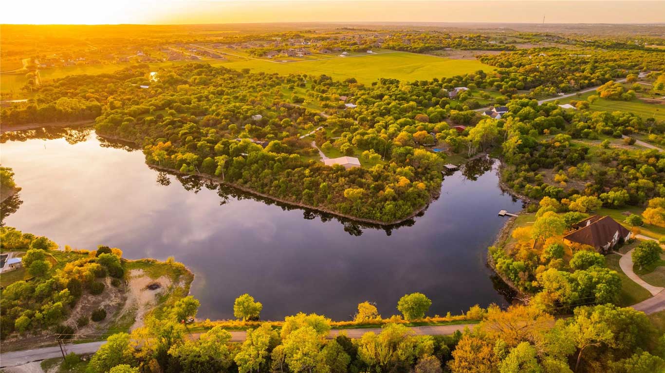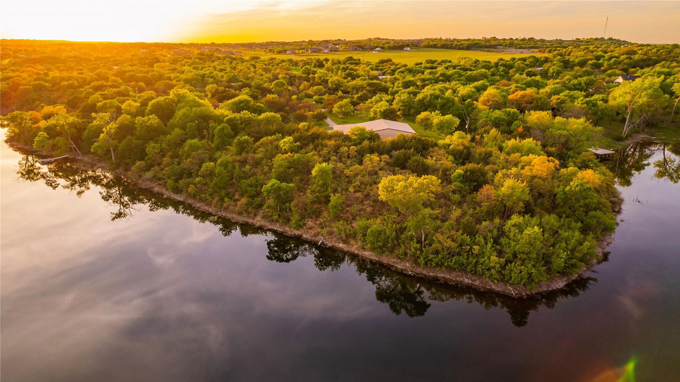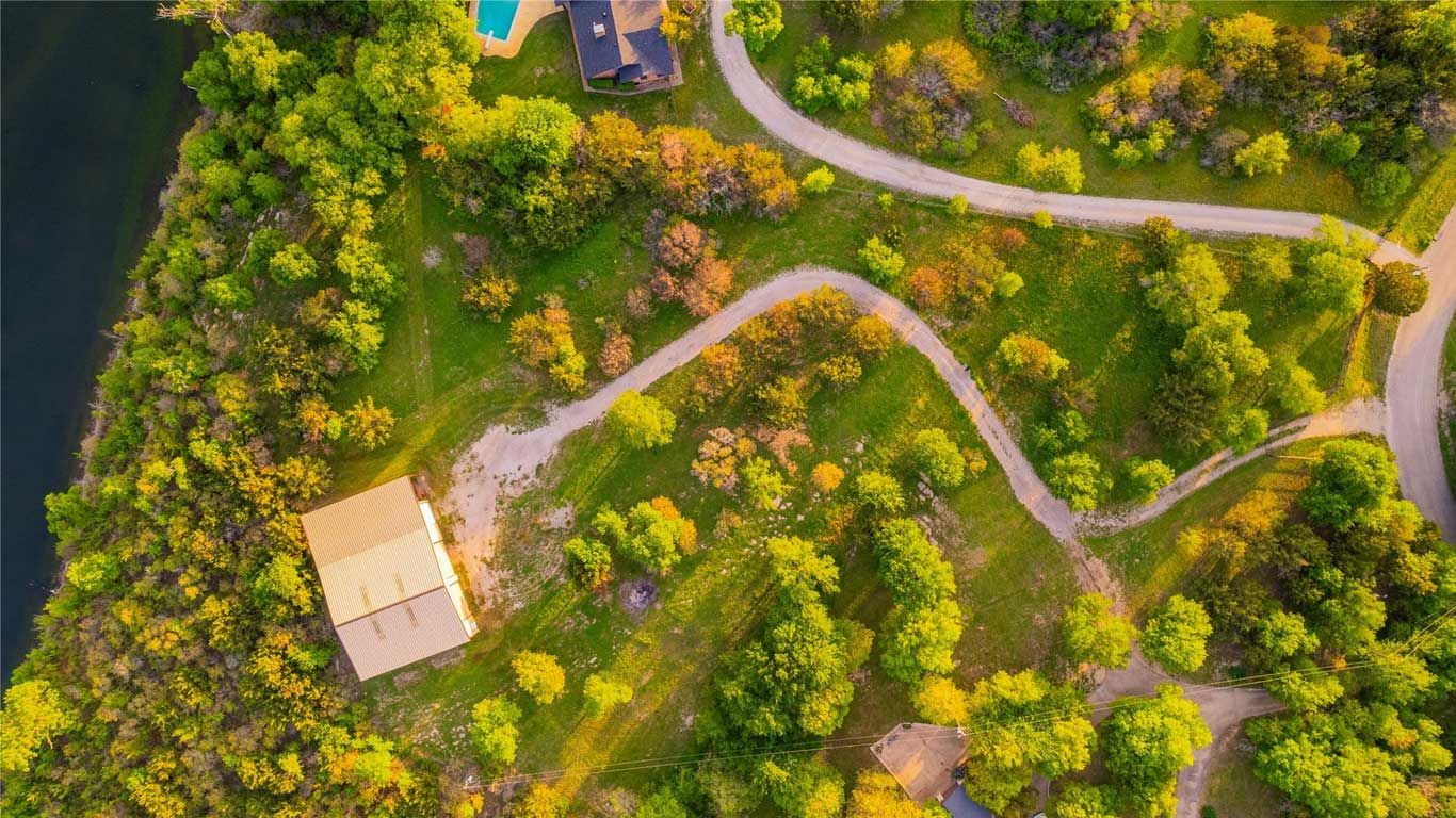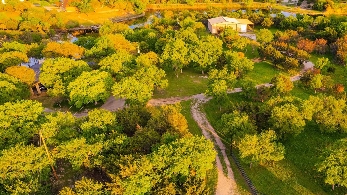 Secluded lakefront and bluff-top lot in Parker County featuring an expansive shop, strategic clearing, fencing, and horse-friendly space—ready for your dream home!