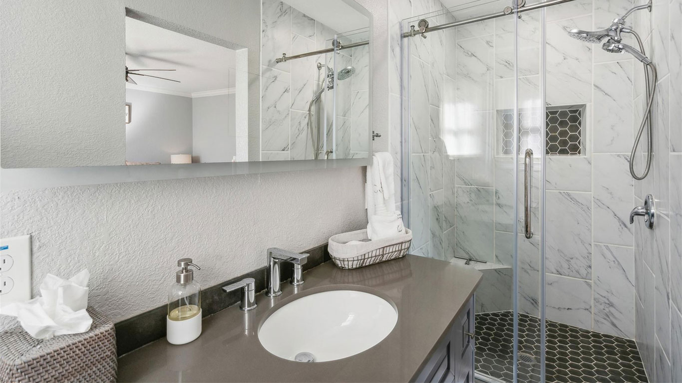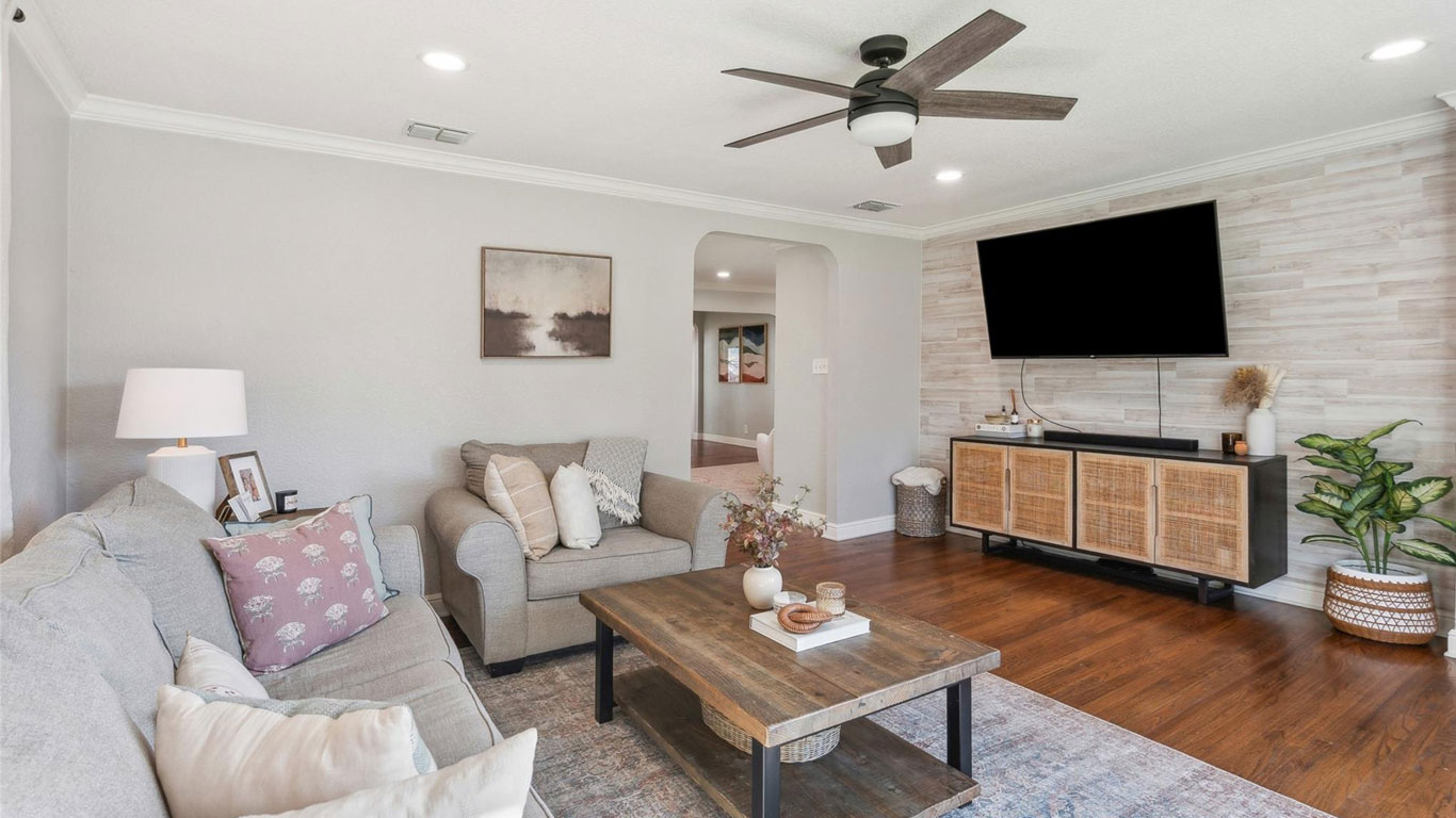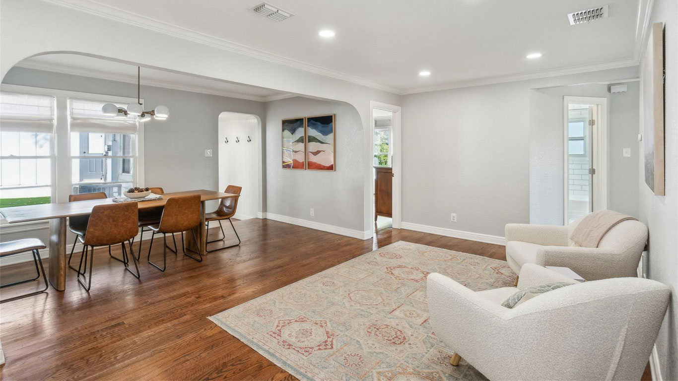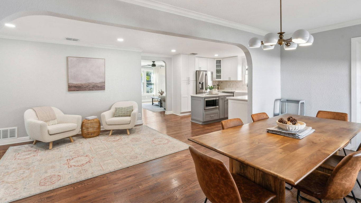 This fully renovated 4-bedroom home offers an open, light-filled layout with hardwood floors and a custom quartz kitchen, plus a spacious primary suite, TREX deck, and new oversized 2-car garage—all just steps from Roy Pope Grocery and Sanguinet Park.