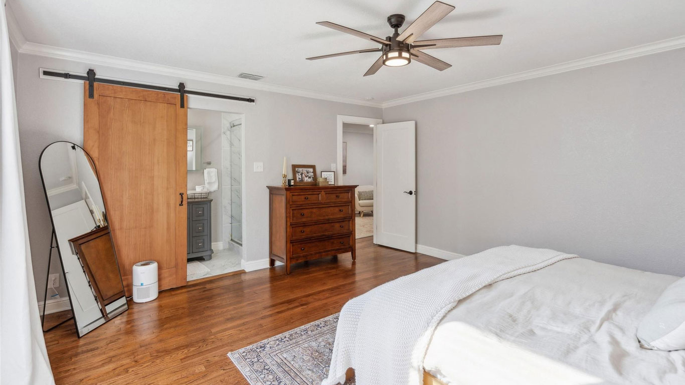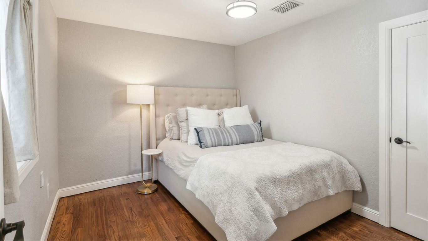 This beautifully renovated 4-bedroom home features an open floorplan with hardwood floors, abundant natural light, and a stunning custom kitchen with quartz counters and premium appliances. The spacious primary suite offers a large walk-in closet and ensuite bath, while the backyard includes a TREX deck and new oversized 2-car garage. Updated top to bottom in 2020, it’s steps from Roy Pope Grocery and Sanguinet Park.