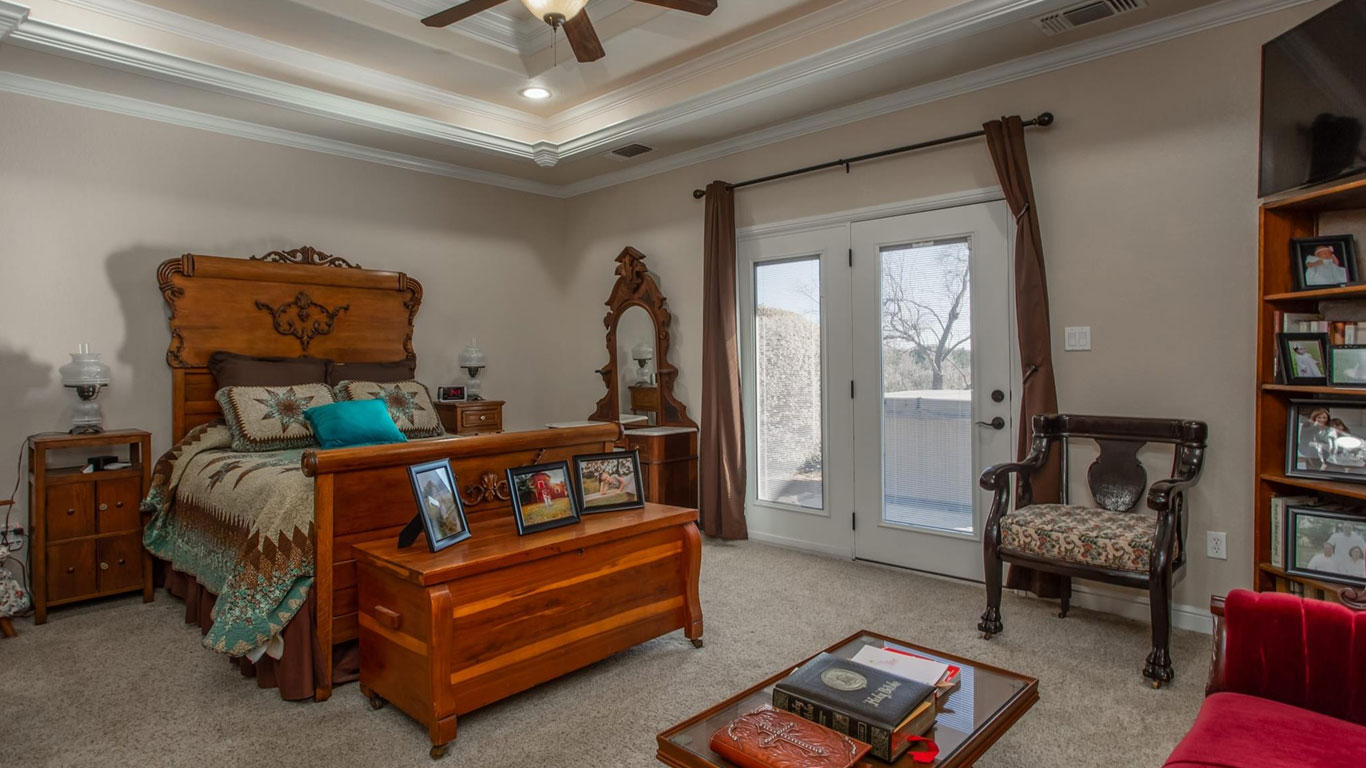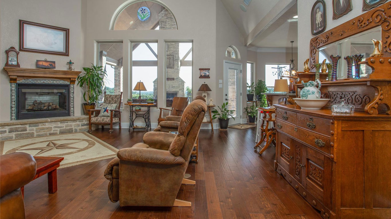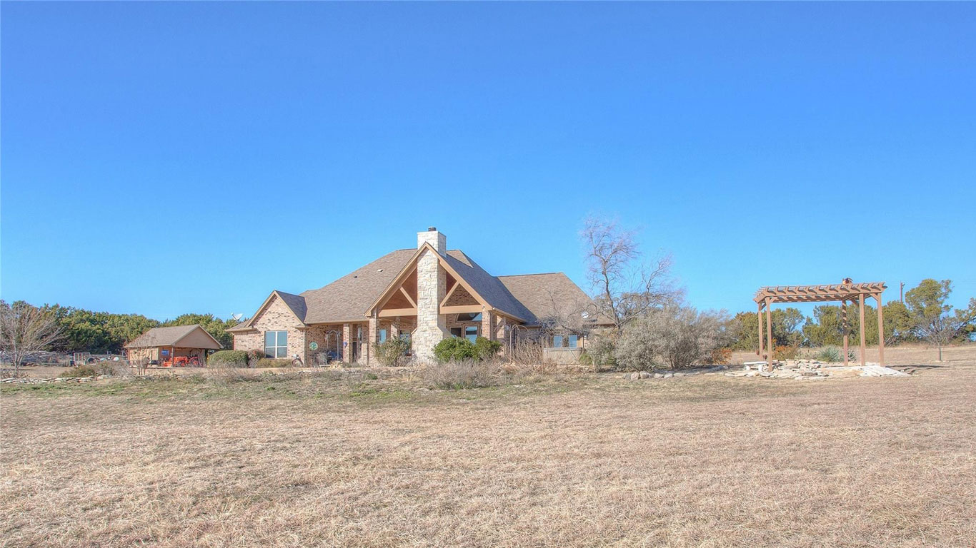 Stunning home on 9+ acres with breathtaking views just under an hour from the metroplex. Features include a spacious living area with 20’ vaulted ceilings, gourmet kitchen, outdoor living with fireplace and hot tub, 3-car garage, workshop, and mature trees. Enjoy abundant wildlife and community amenities including lakes, pool, RV park, and boat storage. Possession available end of May.