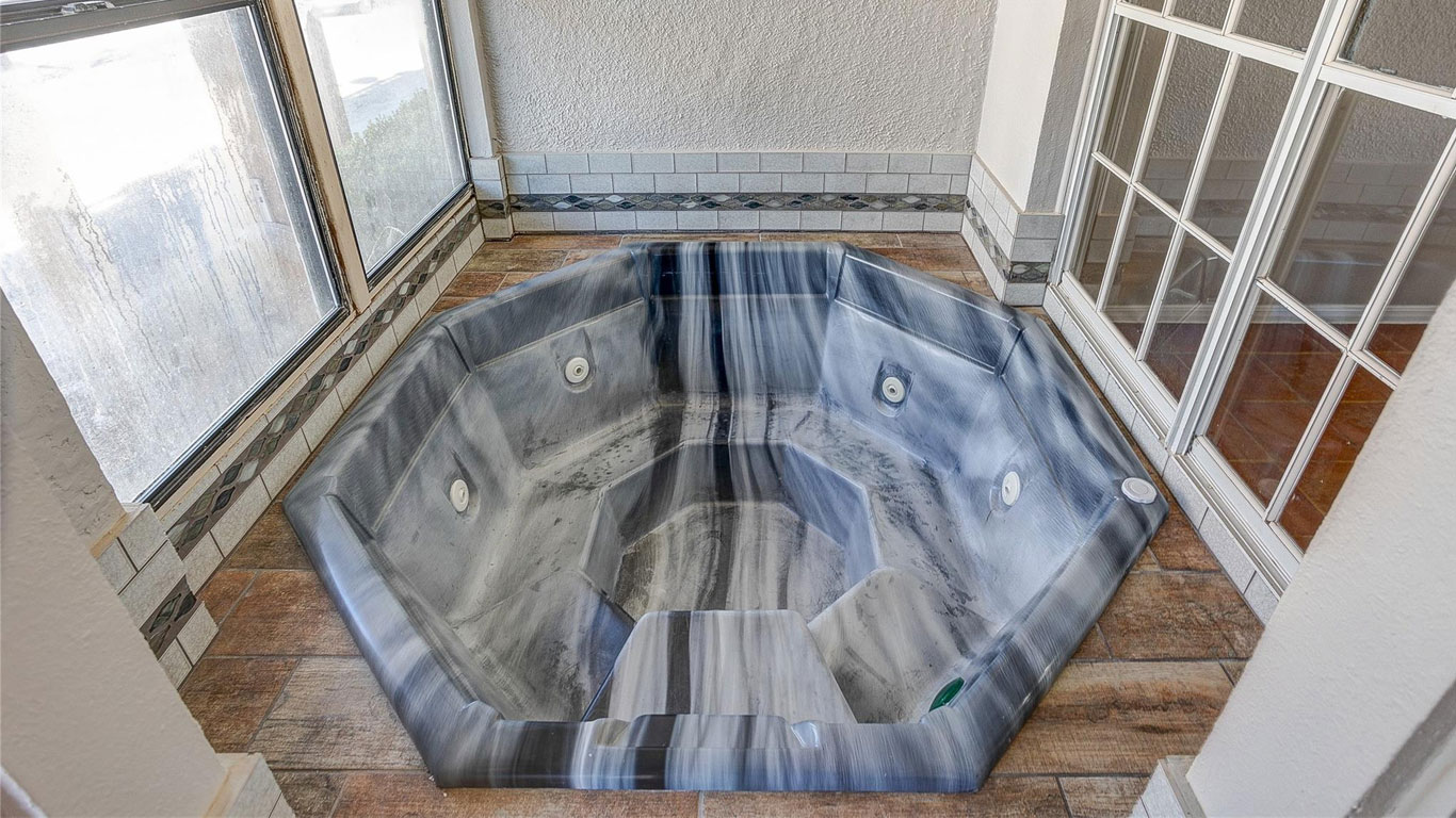 Investor-friendly lakeside condo in the gated Chart House community, featuring two downstairs ensuite bedrooms (one with hot tub), an upstairs kitchen with granite and marble, and a spacious living area with fireplace and water-view balcony. Community offers boat docks and lakeside amenities, with major exterior updates underway and a month-to-month tenant in place.